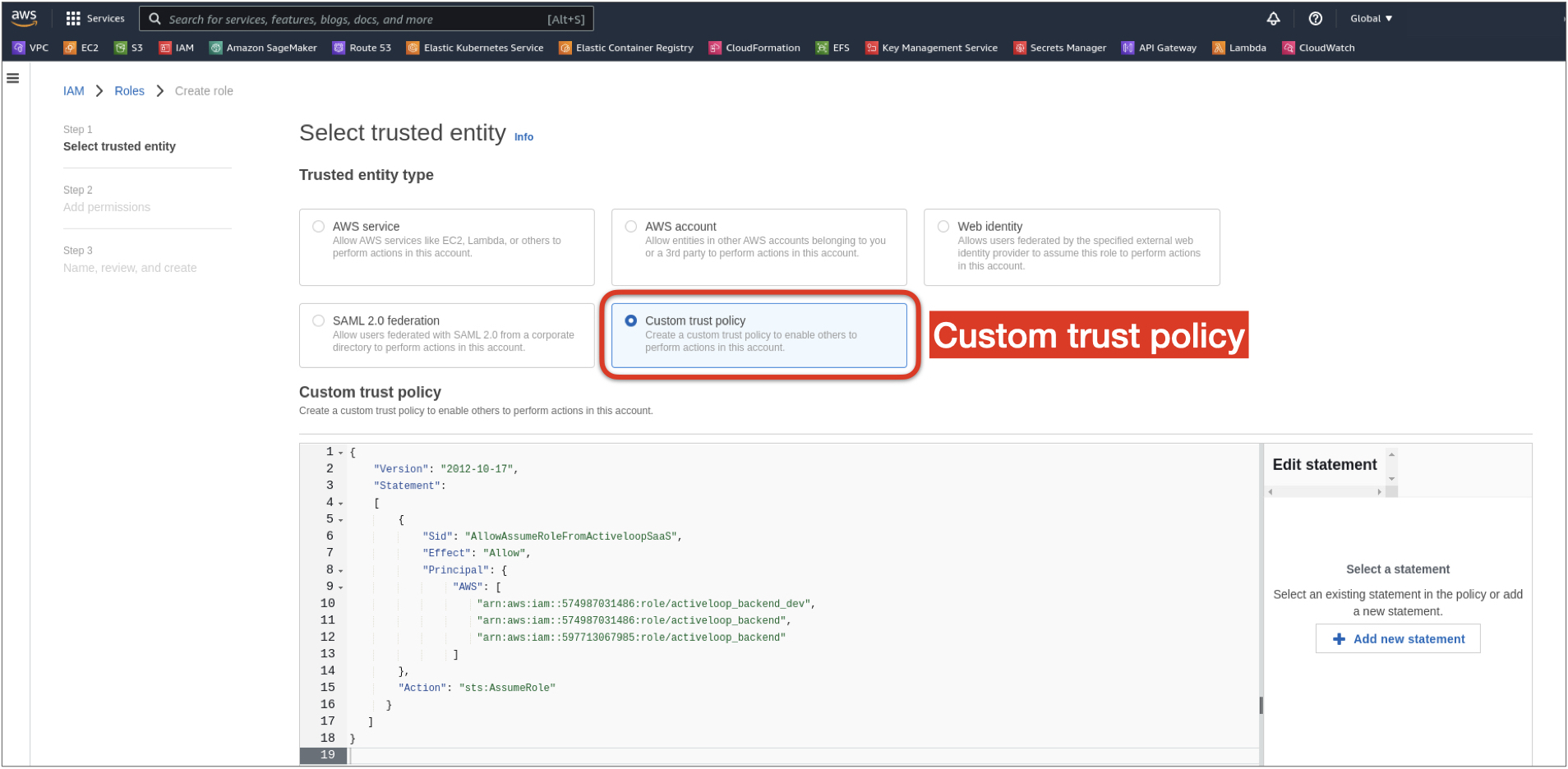 3. Select Custom trust policy from the list of options.