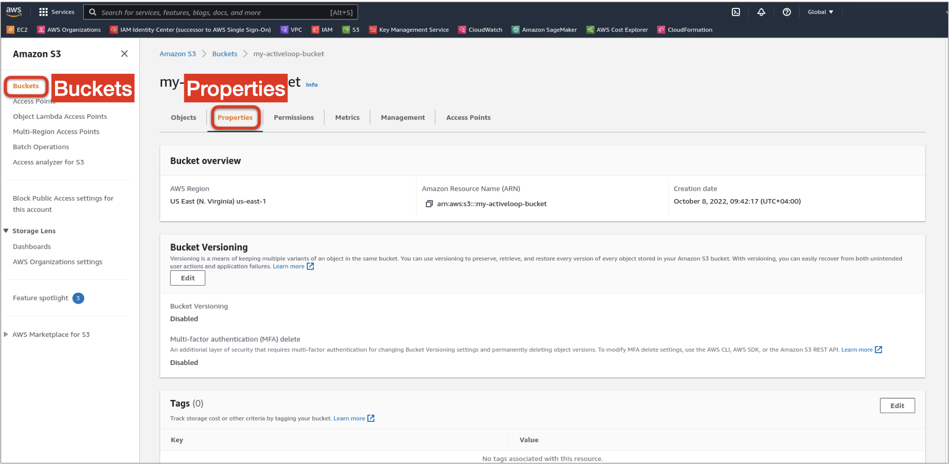 2. Open the bucket Properties