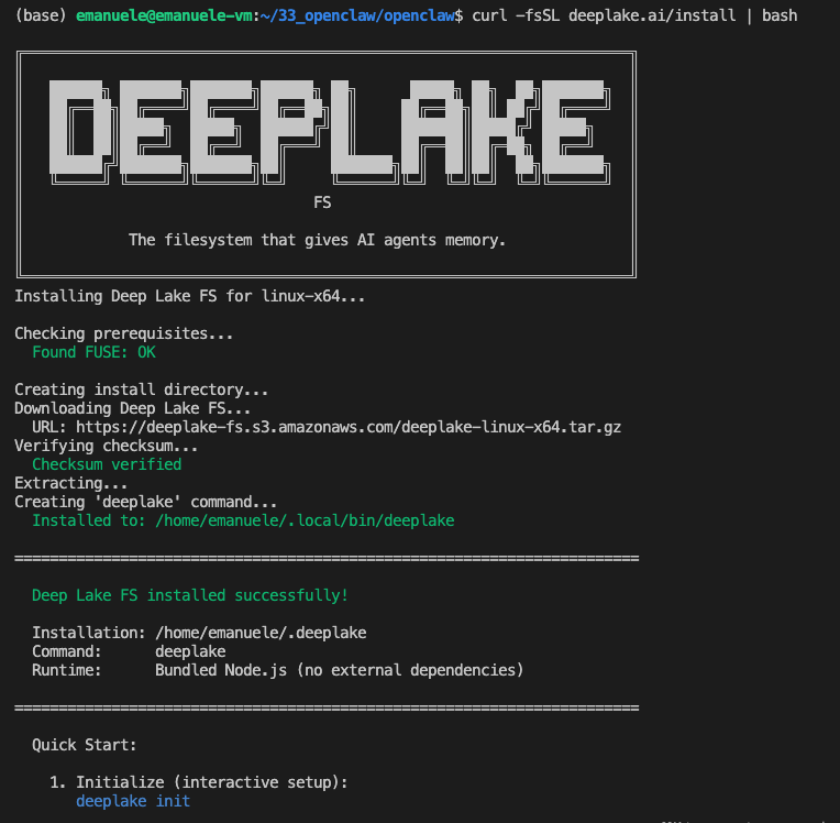 curl -fsSL deeplake.ai/install | bash